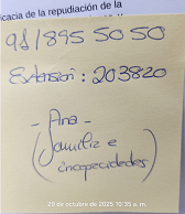 31/10/2025- PRESENTO ESCRITO DE SOLICITUD PARA LA MODIFICADION DE MEDIDAS. no lo presento en el registro general, subo (primera planta) al mismo mostrador que hable con Ana. echamos juntos un vistazo al documento y ella toma notas en el reverso de la ultima hoja. por último anota ahí mi teléfono y mi nombre como contacto para cualquier cuestión que necesiten cuando se pongan con ello. Las comunicaciones que emita el juzgado llegaran por correo postal a calle Aveiro 17.